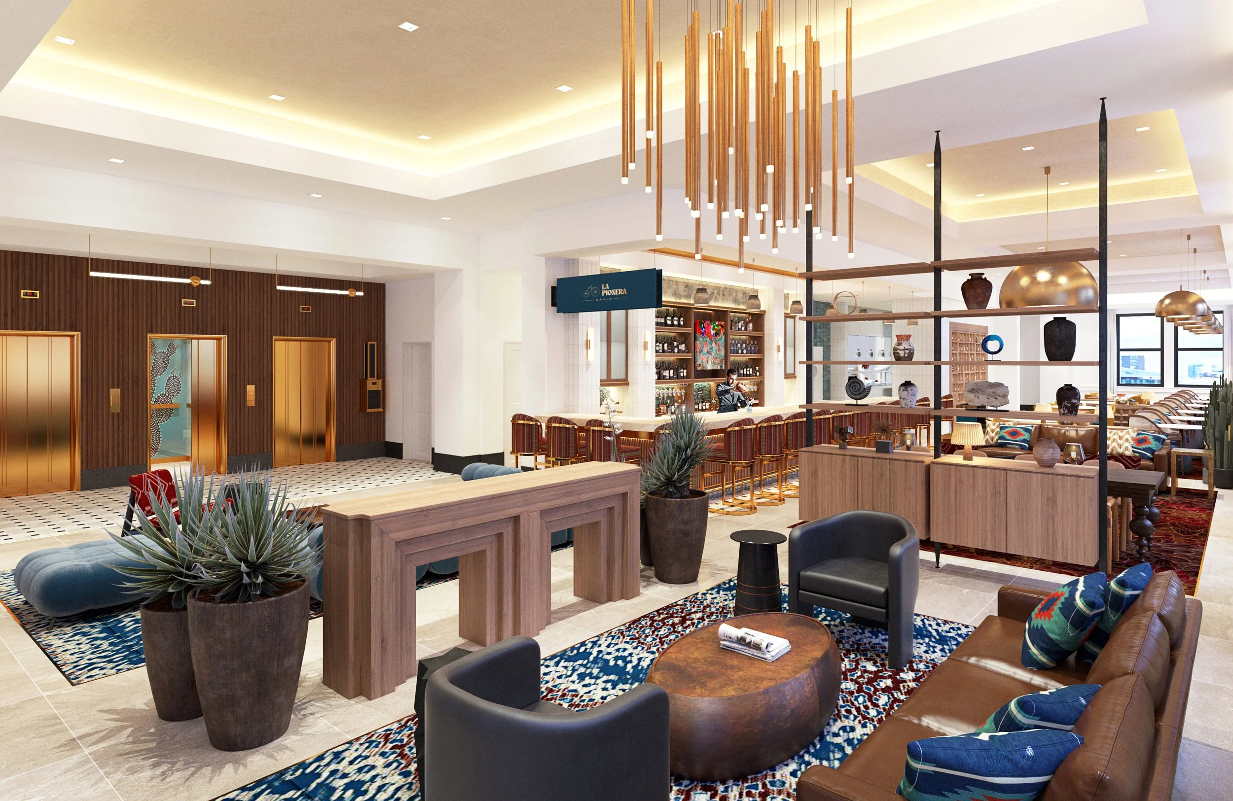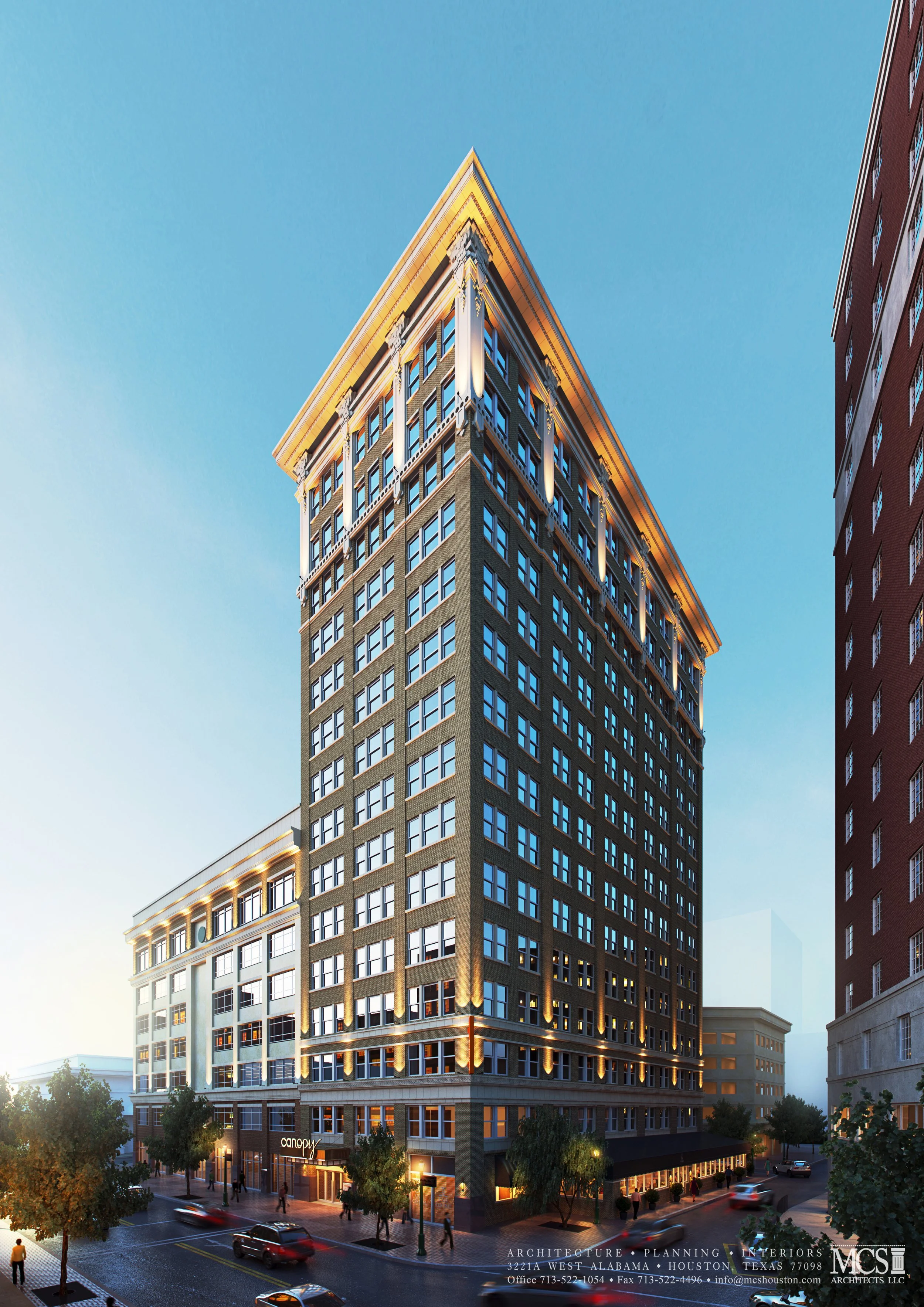 The main entry to Canopy Hotel on the ground floor will be a beautifully restored Historic Lobby with a connection to one of the longest-existing fine dine restaurants in El Paso, Café Central. The project will house 140 guestrooms, a fitness center and support spaces in floors 2 through 14. A new restaurant, "La Pionera" will be located on the 15th floor, which will have a bar, whiskey and tequilla library, with a unique chef-driven menu.